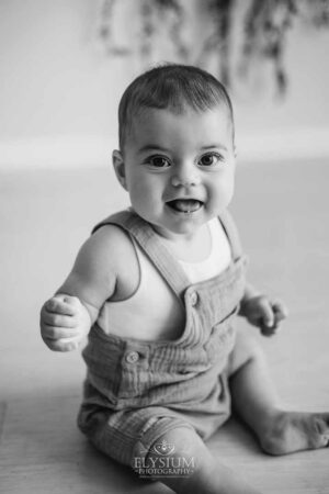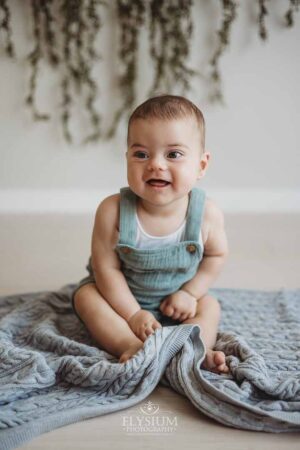 At eight months old, he’s right in that magical “sitter” stage — proudly sitting unassisted, wobble‑free, and absolutely delighted with himself. This session was all about celebrating that new milestone, and Jack made it impossible not to smile along with him. Nearly every frame shows that super‑smiley, full‑of‑life expression that feels so perfectly him right now.