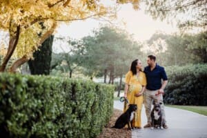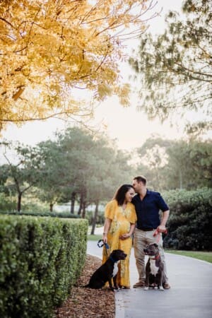 Their 2 fur babies joined in for a bit of fun (after all, fur babies are family too) and showed off their excitement at becoming big brother and sister. Mariel’s beautiful maternity gown perfectly matched the glorious Autumn tones in the leaves. Such a delightful way to celebrate the anticipation of new life! I’m so excited to meet their new little man in a few weeks!