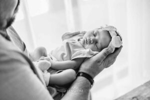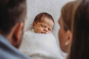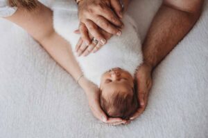 Some sessions unfold with such quiet sweetness that the whole studio seems to exhale, and that’s exactly how it felt the morning baby Lorelei arrived in her parents’ arms. Just ten days new, she settled into the soft warmth of the studio as though she’d been here before — peaceful, content, and so deeply relaxed that she slept through every moment. There’s something incredibly special about photographing a baby who drifts so effortlessly from one moment to the next, their tiny breaths steady and their little features soft with that unmistakable newborn calm.