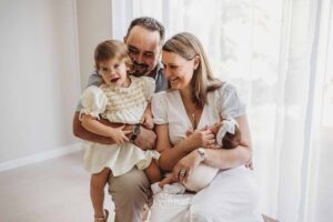 Seeing the Wymers again, now as a family of four, felt like stepping into the next chapter of a story we’d already begun together. Their maternity session was filled with tenderness and anticipation, and all of that emotion seemed to bloom even more fully now that their second baby girl was finally here. Mum and Dad moved with the same gentle ease as before, their hands instinctively supporting Lorelei, their expressions full of that quiet, overflowing love that comes with welcoming another child.